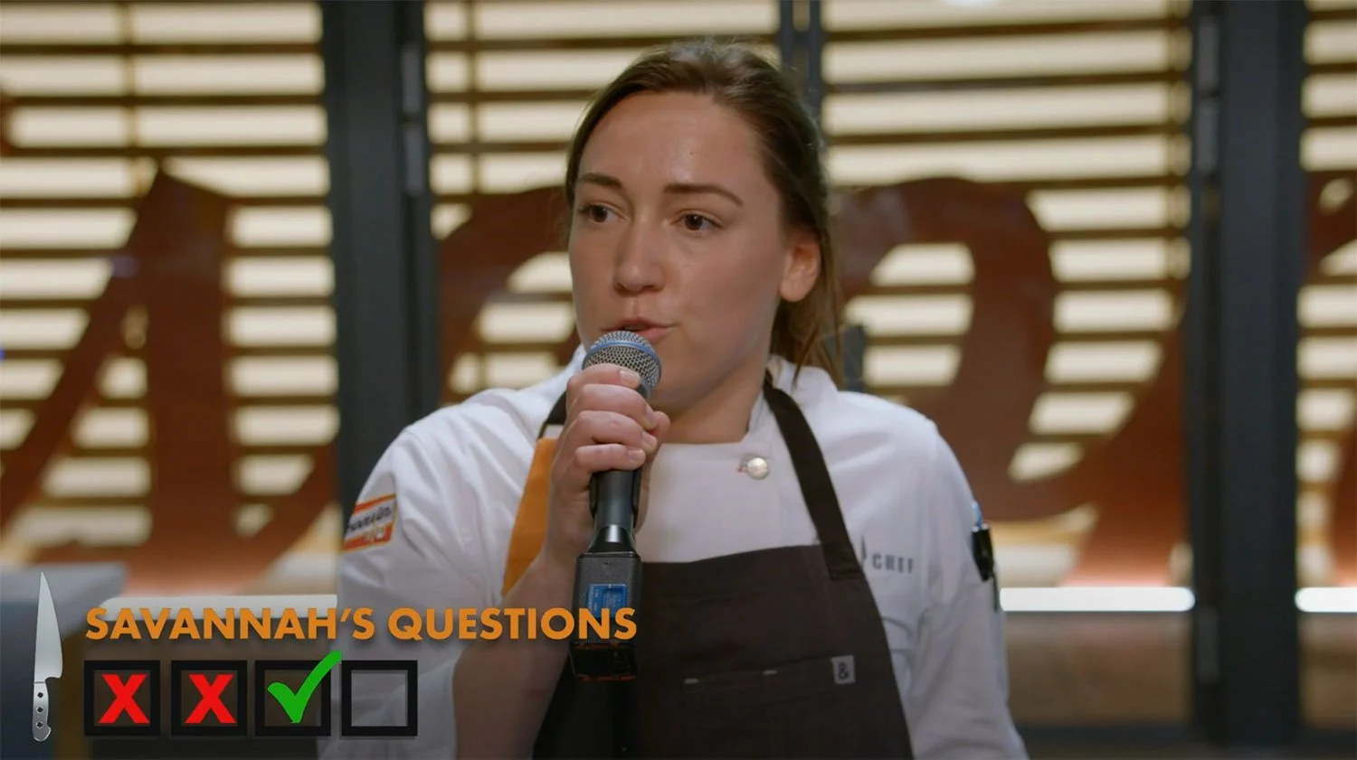 Each chef could ask one yes-or-no question before the clock started. Once they started cooking, they could each ask an additional three questions.