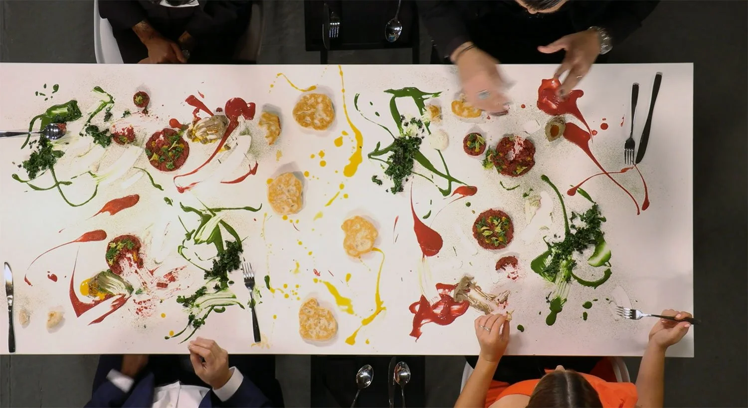 “For your elimination competition, we want you to create a dish that is directly plated on the table top,” said Kish.