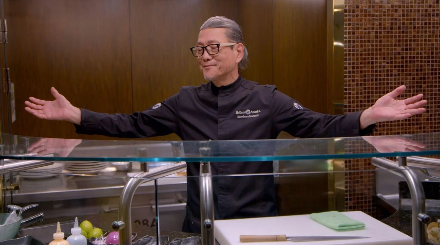 That night, the chefs dined on the gigantic Eurodam at the sushi restaurant Tamarind. As they entered, a very special person was waiting for them: Chef Masaharu Morimoto of both Japanese and American Iron Chef fame. Morimoto is the ambassador of the Fresh Fish program, and cooked the chefs a once-in-a-lifetime meal.
