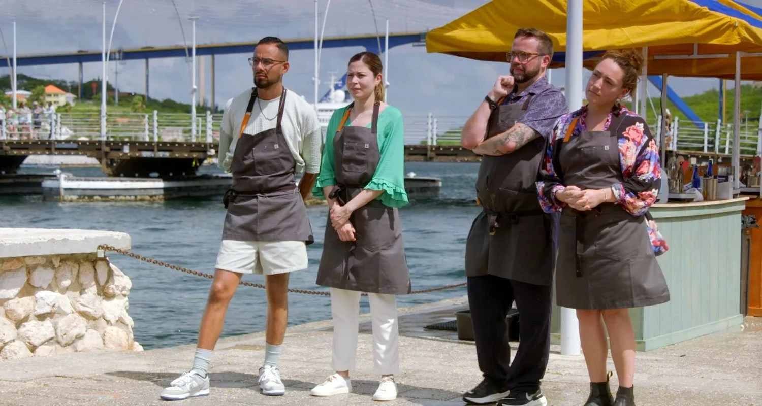 “This definitely isn’t Milwaukee anymore,” said Jacobs as the cameras panned across the Caribbean island of Curaçao. The final four chefs were welcomed by hosts Kristen Kish, Gail Simmons, and Tom Colicchio, who were waiting for them with a curaçao (the liqueur) drink and some funky looking fish.