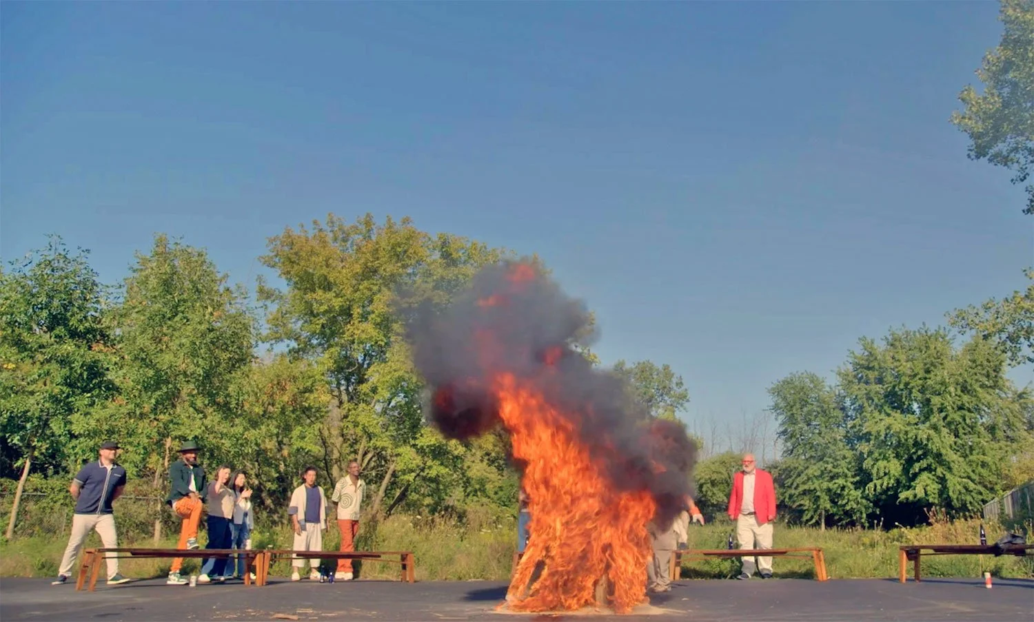 Kish told the contestants to meet outside, where there was a large fire and six Top Chef All-Star alums waiting for them.
